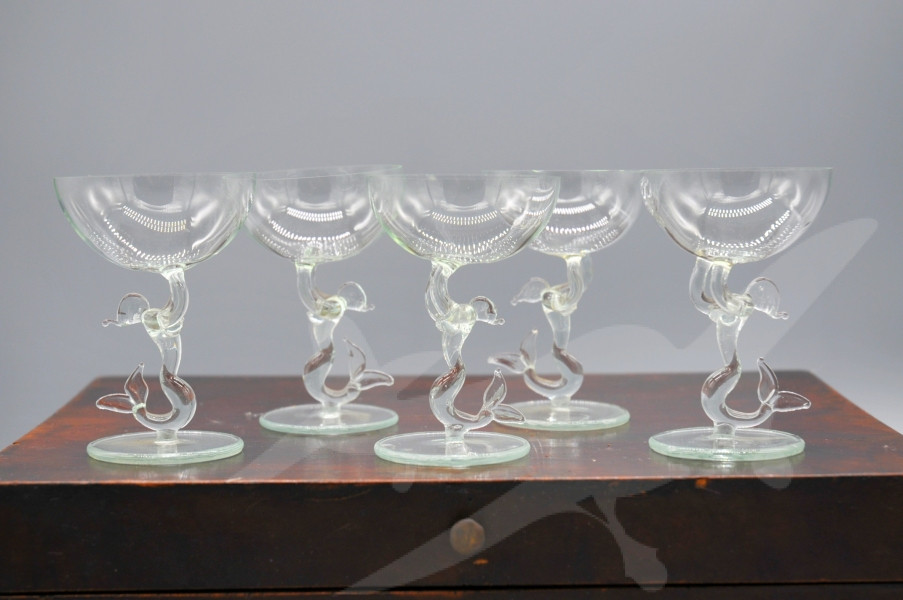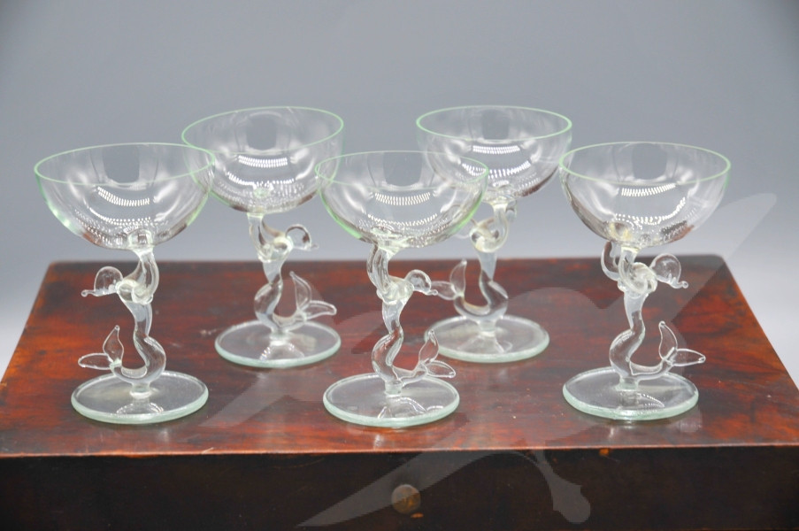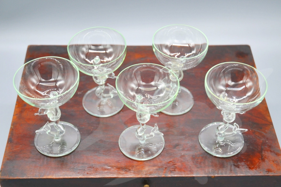 Starožitná skleničky Bimini s figurální nožkou 5 ks